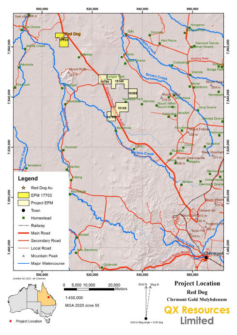 QXR holds ~100,000 hectares across the Drummond Basin, targeting epithermal gold-silver systems and reassessing historic open-pit mines for resource extensions. The Big Red Project has returned high-grade trench results and drill-ready targets. QXR also holds a 70% stake in the advanced-stage Anthony Molybdenum Project and two copper-gold-molybdenum permits with promising geophysical anomalies.
